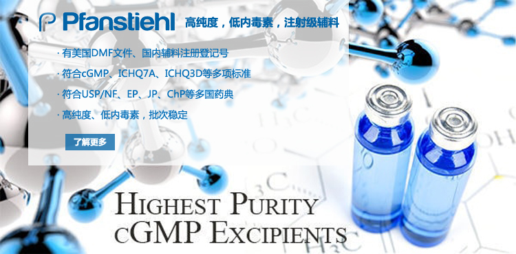 “熱烈祝賀Pfanstiehl的注射級甘氨酸Glycine(G-140)喜獲CDE登記號F20250000403, 這是Pfanstiehl產品獲得的第18個CDE登記號!”甘氨酸在醫藥輔料制劑中應用廣泛,, 可作為緩沖劑,增溶劑,穩定劑等,具有諸多優勢。Pfanstiehl秉承一貫高品質理念,為滿足全球生物制藥行業對于高品質甘氨酸的需求,隆重推出的注射級甘氨酸Glycine (G-140), 具有超高純度,超低內毒素,超低金屬殘留的特點,單獨檢測29種金屬離子,并且新增DNA,RNA,DNA酶,RNA酶和脂肪酶,亞硝酸鹽等多項質量指標的檢測,符合多國藥典規定(USP, EP, BP, JPE, ChP),可用于生物治療性藥物和疫苗的生產。產品信息:· 產品名稱:Glycine, High Purity, Low Endotoxin, Low Metals, USP, EP, BP, JPE, ChP (G-140)· 中文名稱:甘氨酸· 分子式:C2H5NO2· 分子量:75.07 g / mol· CAS號:56-40-6· 產品貨號:G-140產品特點: · 超高純度,超低內毒素,超低微生物含量,超低金屬雜質殘留· 質量指標新增DNA,RNA,DNA酶,RNA酶,脂肪酶和亞硝酸鹽檢測· 符合多國藥典:USP, EP, BP, JPE, ChP· 符合ICH Q3D標準· 符合GMP標準· 已獲DMF和CDE登記號 產品應用:· 緩沖劑· 穩定劑· 增溶劑如果您對Pfanstiehl注射級別Glycine G-140感興趣,歡迎聯系Pfanstiehl 中國區代理商北京西美杰科技有限公司獲得如下詳細的產品概況說明文件和測試樣品。Pfanstiehl Inc.最新產品系列如下,歡迎聯系北京西美杰科技有限公司獲取100g裝免費樣品。北京西美杰科技有限公司為Pfanstiehl中國代理,為客戶提供完善的技術支持與售后服務。歡迎撥打西美杰客服電話400-050-4006或者登陸網站www_xmjsci_com.ibdpmp.pro了解更多信息。 更多>西美杰介紹